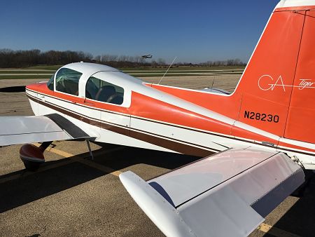 Mid November brought unusually nice weather, and lunch at the picnic tables by the FBO came with a nice show of airplanes. A Grumman American Tiger in good condition was parked near the tables. It's bonded aluminum construction was clearly visible looking down the skins. This must have made construction simpler but never was widely adopted. While rivets look aerodynamically dirty, it's clear the ripples in the skin resulting from the bonding process would also ruin laminar flow. Over the course of lunch, a Beech and a Cessna departed the field and a Piper arrived.