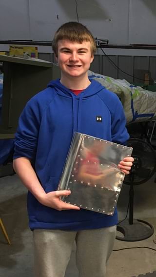 Chapter member Killian Madeley was the first of the teens to finish his Van's practice kit, an aileron section, this at the first of the April build sessions. At the mid-April session he and mentor Andy Plouse took inventory of the Cruzer empennage kit. Two ribs were found missing, and Zenith promptly shipped them out. The following Tuesday, teens built up the skeleton of the rudder. At the next session, which will be the first of the Saturday sessions in May, the rudder will be skinned and work will begin on the horizontal stabilizer.