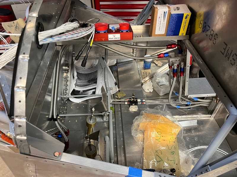 (There were no build sessions the previous two weeks.) 1.5 hr: Ankith, Paxson, Samuel, Soumik 2 hr: Connor - Finish installing pitot lines to ADAHRS. - Continue installation of throttle cables: Bulk head fittings at firewall, etc. Nearly done. - Begin routing aft wires under seats. Much more to do. - Purchase and fit runs of split, corrugated tubing for wiring runs in the footwell. 1523 hr cumulative