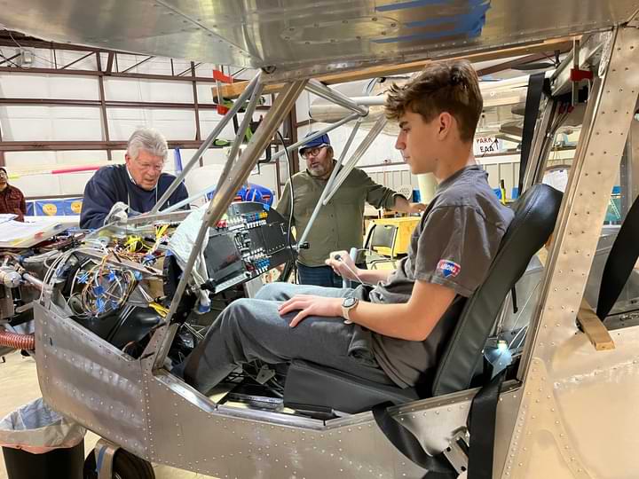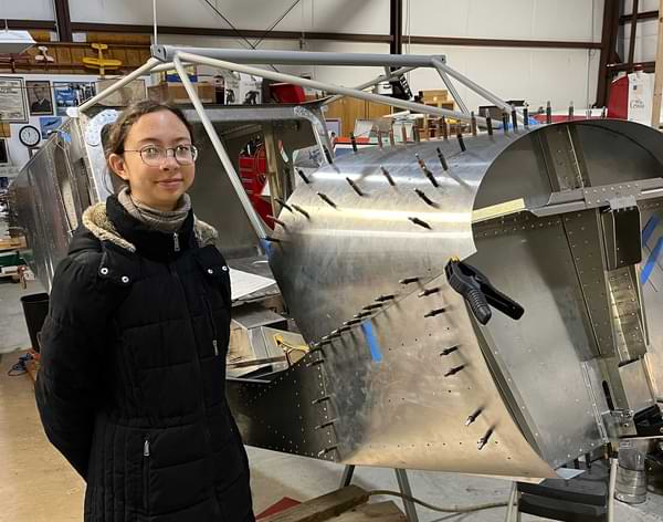 2.5 hr: Wyatt, Zee, Ishan 1.5 hr: Killian, Grace, Adrienne, Abel - One cabin forward channel isn't right and will be replaced. - Almost finish the riveting of the cabin belly. - Begin fitting engine mount to firewall. - Begin fitting cabin's engine mount brackets, and prepare shims for lower pair. - Finish bolting the wing strut bracket to the lower longerons (tight fit for the nuts). - Work on mounting magnetometer plate; rivets are loose and must be drilled out. - Finish fitting fuel tank to wing, and begin fitting fuel sender to the tank. 794 hr cumulative