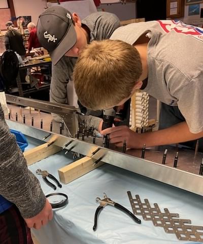 2 hr: Nolan, Isaac, Paxson 0 hr: Julian, Grace (both in training) - Finish wiring inside elevator, etc. - Install seat pans and their braces in the cabin. 291 hr cumulative