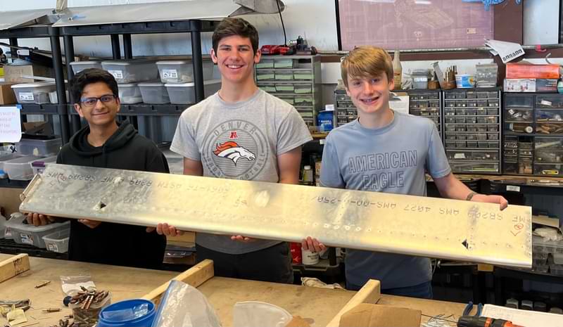 2 hr: Wyatt, Zee, Killian, Grace, Ishan - Continue wing assembly, bottom skin and fittings. - Fit bolts to steel bracket tying wing strut to lower longerons. 626 hr cumulative