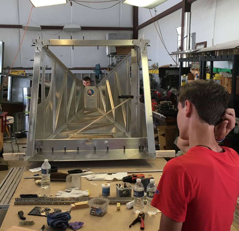2 hr: Isaac, Nolan, Paxson, Luke, Killian - Drill elevator to hinge, disassmble, deburr, begin to reassemble. - Begin to assemble cabin section of the fuselage. 285 hr cumulative