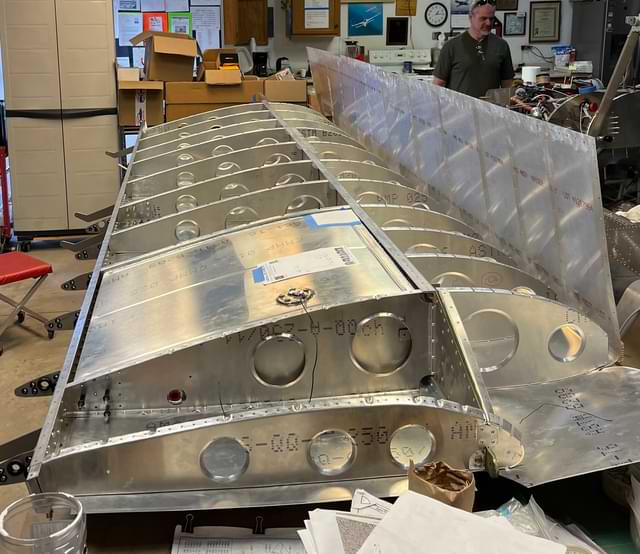 1.5 hr: Soumik, Bobby, Julian - Mount and align both wings. (Aft spar bolts not yet drilled.) 1465 hr cumulative