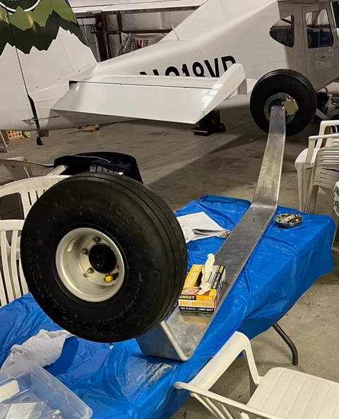 1.5 hr: Killian, Paxson, Ishan, Wyatt, Zee, Nolan, Isaac, Julian - Fiddle with new elevator bell crank layout and linkage. - Begin fitting main wheels to main gear. Fit could be better. One set of brake pads binds on its ways. - Work on attaching rudder pedal assemblies to cabin floor. Factory holes are too tight a fit. - Start fitting the bearings for the control stick's torque tube. 439 hr cumulative