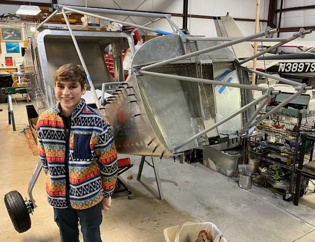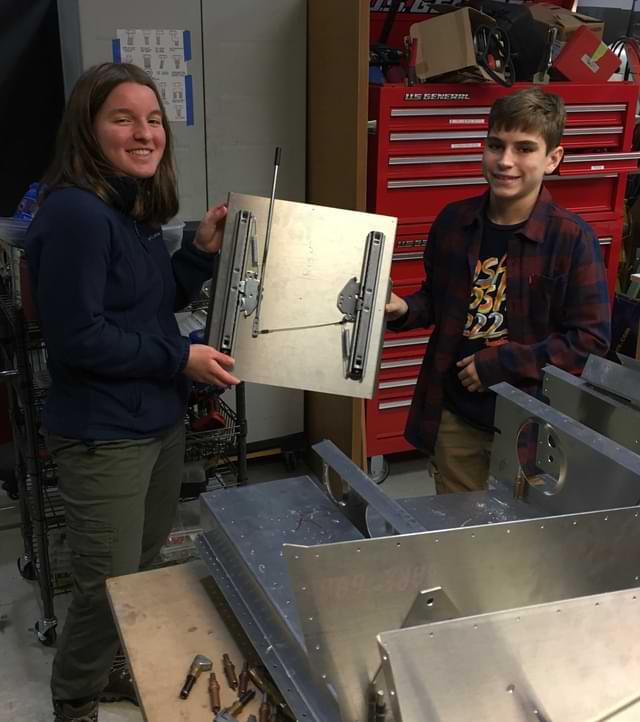 2 hr: Killian, Paxson, Grace, Wyatt, Zee, Luke - reassemble and rivet wing skeleton - layout and drill last row of rivets for the seat pans - disassemble cabin floor and remove cabin sides to deburr bolt holes to landing gear bracket 587 hr cumulative
