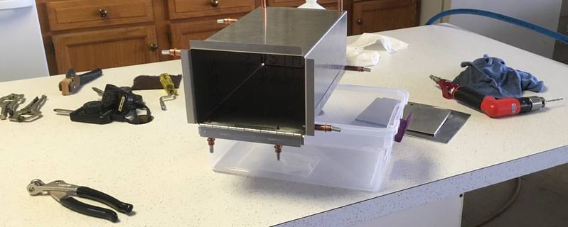 1 hr: Bryce 3 hr: Will 4 hr: Paxson, Isaac, Nolan 5 hr: Killian - Lecture on deburring: Close inspection of elevator skin reveals we must double the number of rivets to compensate for the awful job of deburring. - Fit internal members of the elevator. - Finish map box; store in the attic. - Collect fuselage bottom skin parts from the attic and begin layout. Deburr bottom skin (huge burrs). Begin to cleco up on picnic tables (main build table is occupied with the delayed elevator assembly). 125 hr cumulative