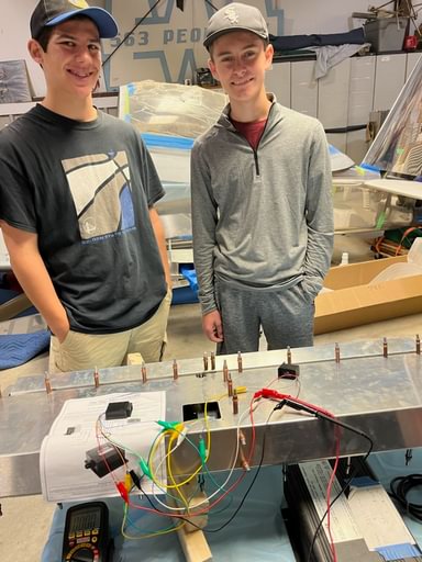 2 hr: Ishan, Luke, Wyatt, Zee, Nolan - Continue skinning the first wing. - Study fit of control linkages in the cabin. - Review antenna mounting locations. 616 hr cumulative