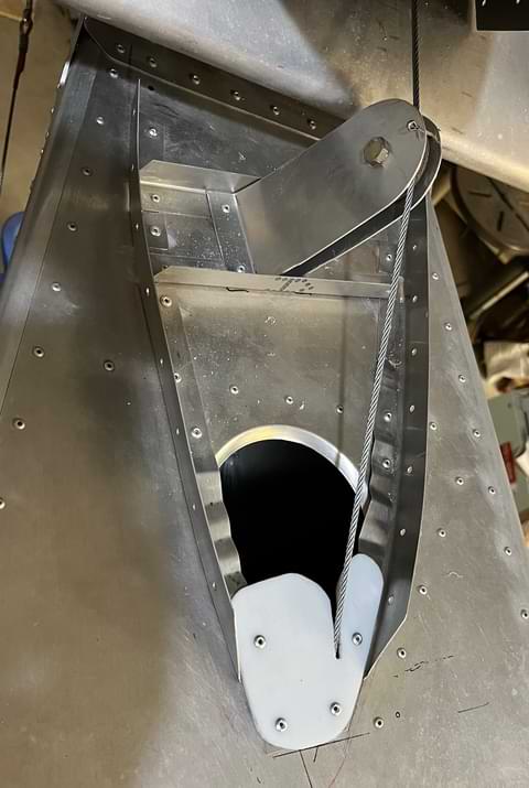- Modify rudder cable aft fairleads and fairings and install.