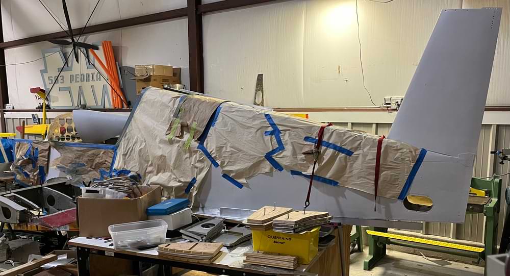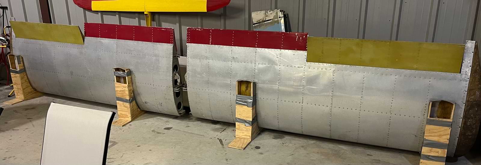 It has had two N numbers with the FAA. As N44BR, it was part of a museum collection in North Carolina. A previous owner had the idea to convert it to a faster airplane, one with retractable main gear and a Wankel auto conversion. It appears to have been built with a side stick instead of the center stick in the plans. The fellow who donated it to us had partly disassembled the fuselage and fully disassembled the wing center section to begin returning the airplane to the plans configuration.
